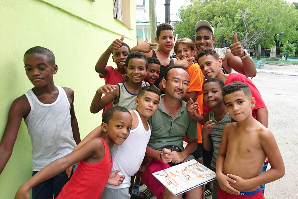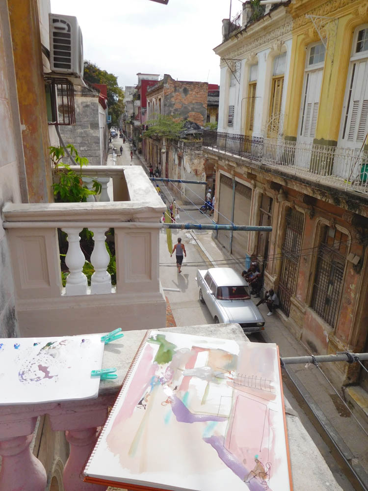 街のなかで良い構図に出会うとスケッチブックを広げて水彩を描く。不思議とキューバ人は見て見ぬふりで寄っては来ない。モロッコとはこのへんが少し違う。社会主義国家だからだろうか。