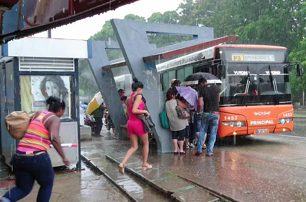 その後中心部に戻ろうと市バスを待っていたら突然のスコール。20数人とバス停脇の軒下で雨宿りするはめになった。約1時間ほども降り続いただろうか。キューバ人はとくに焦ったりせず、のんびりと雨が弱まるのを待っている。しかし道はまるで川のようになってしまい、ようやく来たバスも超満員で乗れず、結局乗り合いタクシーでCASAに戻った。